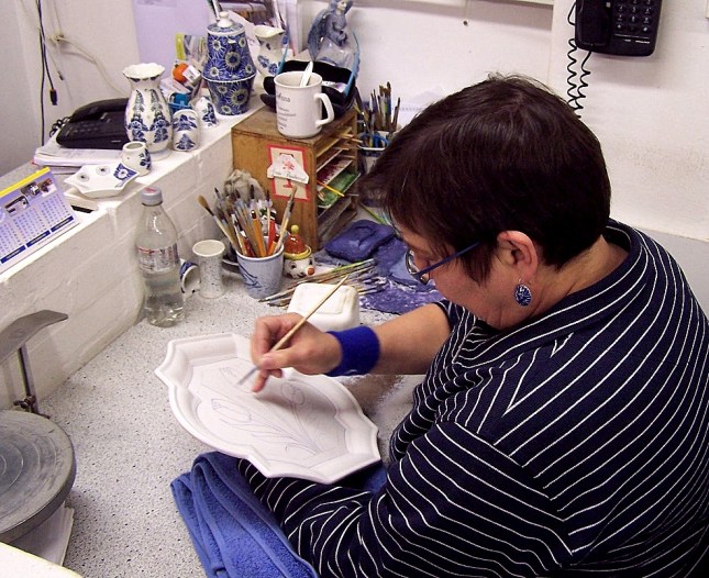 Handpainting authentic Delft pottery, Delft, Netherlands