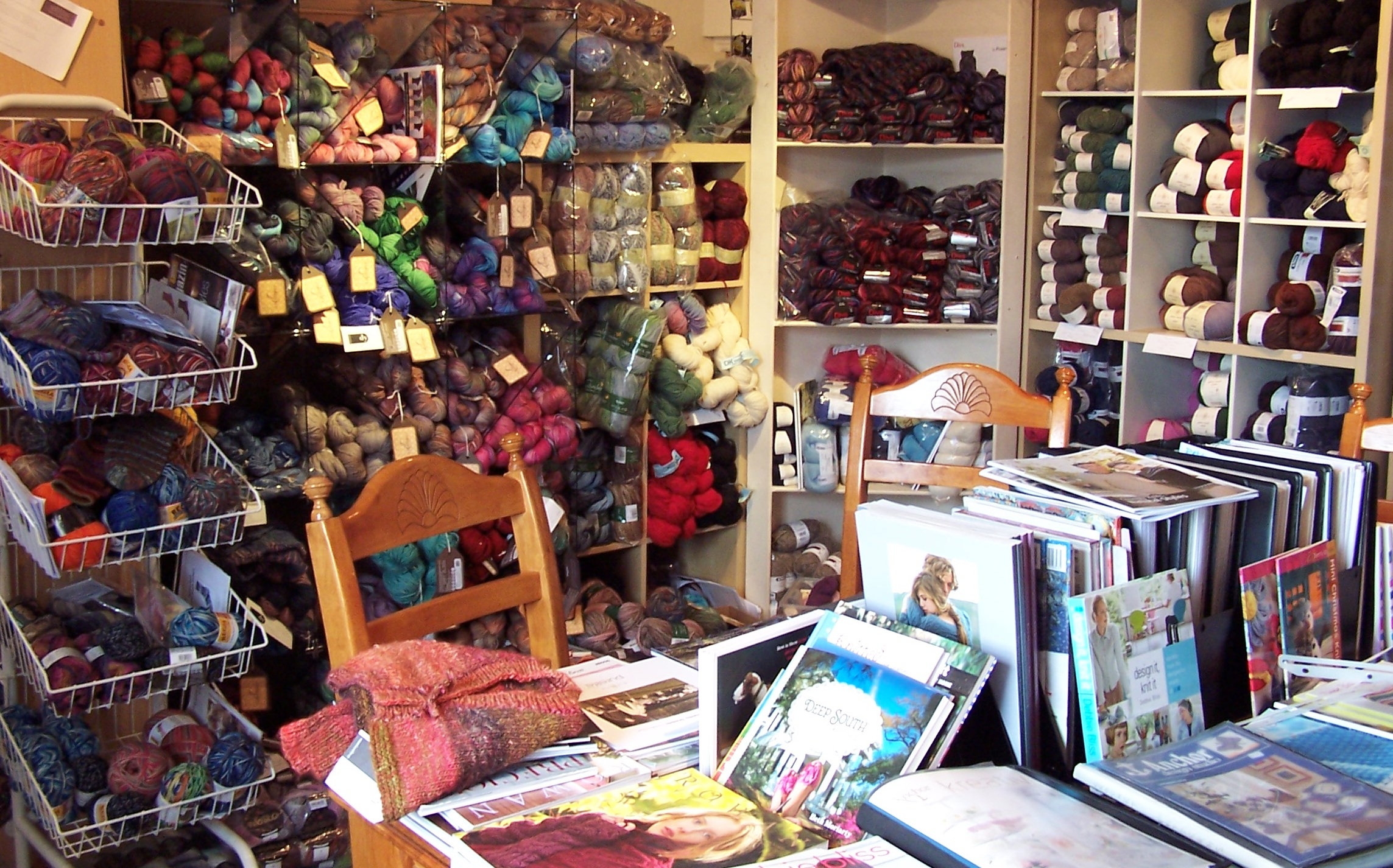 I don’t know what you call the female version of the man-cave, but in my house it will look something like this. One whole wall will be dedicated to a lattice of floor-to-ceiling bins stuffed with skeins of yarn in every color, texture, and weight imaginable. Even if I never get around to crocheting it all into afghans, throws, scarves, or socks, the yarn itself will be art, a kind of woolly 3-D wallpaper that will embrace me as soon as I enter the room.