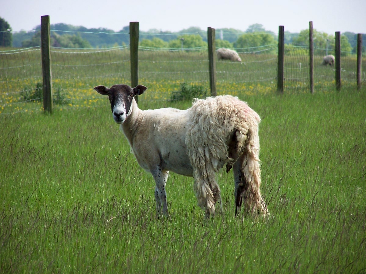 Well, this one certainly caught me off guard. The only adult sheep in the field that wasn’t completely covered in a year’s worth of thick fleece. Yet not completely shorn, either. Did the farmer get halfway through and discover his shears just weren’t sharp enough to continue? Did he suddenly get word of an impending blizzard and want to leave this poor ewe with at least some protection from the elements? Was the ewe acting up so badly that the farmer couldn’t finish the back half of the shearing job? Are wool buyers now refusing to purchase wool that contains clumps of poo? Are woolly chaps the hottest fashion trend in the pastures this spring? Oh, if only an animal could talk, so I could get to the bottom of this ovine mystery.