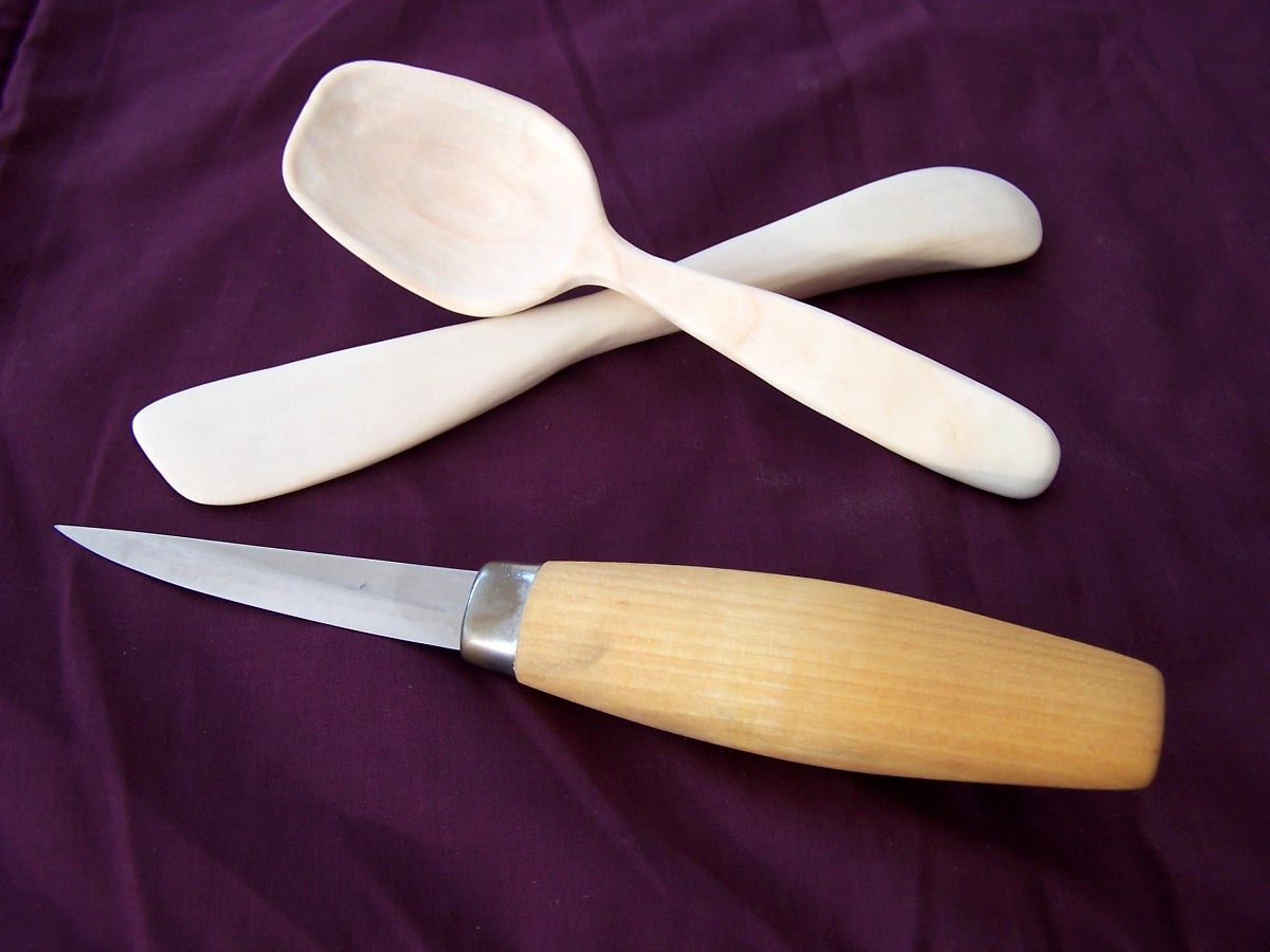 Sharp is the knife I used in a traditional spoon carving course this past weekend. On Saturday we made a Scandinavian butter knife out of lime wood (a.k.a. basswood), a relatively easy project on which to practice our new axe and knife skills. Then on Sunday we got down to business and transformed an alder log into a Scandinavian style eating spoon. I am proud to report that except for some tape over a blister raised by the axe, I had no need of plasters (Band-aids) or the emergency room!