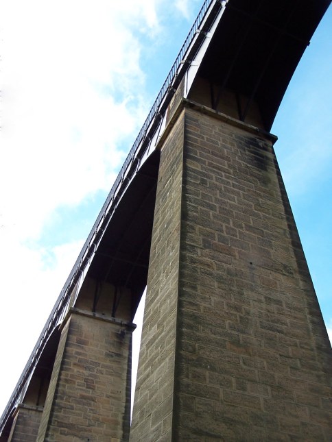 Canal boats glide high across Pontcysyllte Aqueduct, 126 feet above the River Dee in Northern Wales