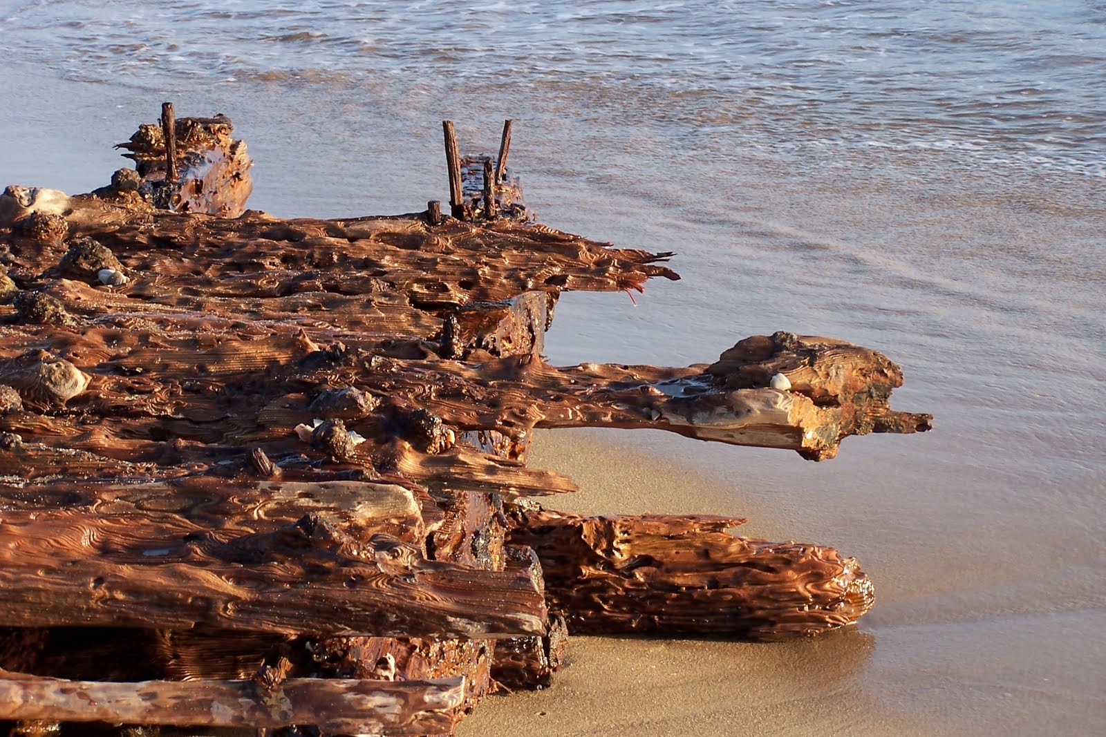 Honeyed timbers of an ancient shipwreck, Outer Banks, North Carolina