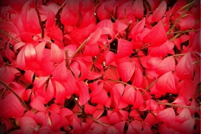 The fall colors have become much more intense in the local area over the past couple of days. The blazing red of this burning bush (actually a whole row of them) could not be ignored! I’m grateful that the strong winds that blew through over the last 24-hours didn’t tear them away before I could capture them (although they’d certainly make a brilliant carpet)!