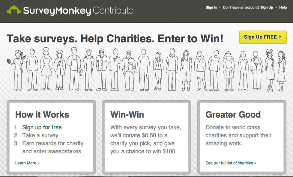 But I recently found a way to ensure that someone wins when I do a survey. Every time I complete a brief questionnaire at SurveyMonkeyContribute, fifty cents goes to the charity of my choice.